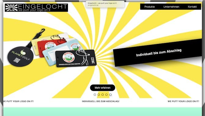 Für unseren Kunden David Kochon haben wir die Marke „Eingelocht“ entwickelt. Diese spielt ganz bewusst mit dem erfolgreich absolviertem letzten Schlag an einem Green. Damit das Ganze zukünftig stilsicher und mit Style vonstatten geht, haben wir die Marke, die individuelle Golf-Accessoires bundesweit vertreibt, mit einem differenzierendem Auftritt versehen, der seinesgleichen in der Branche sucht. Und wenn ihr wollt: we putt your logo on it.